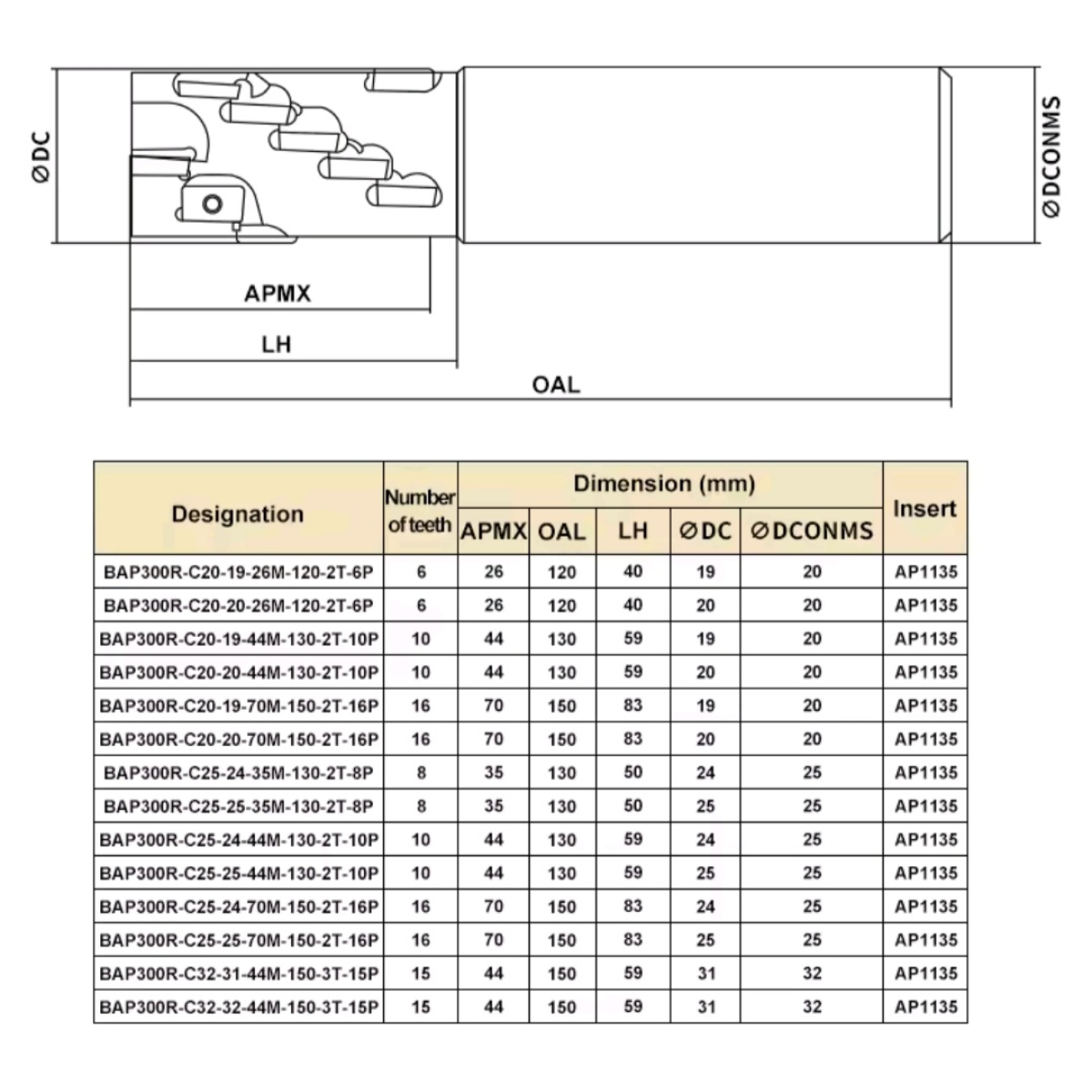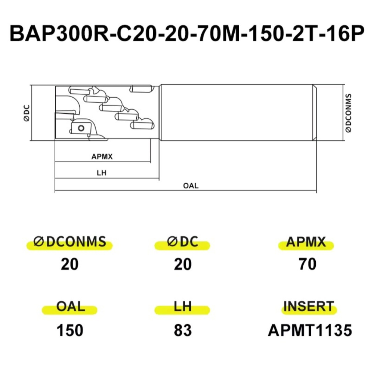 BAP300R-C20-20-70M-150-2T-16P Фреза "кукуруза"