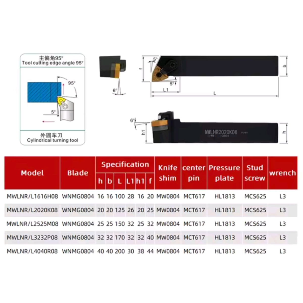 MWLNL2020K08  Різець токарний прохідний (державка)