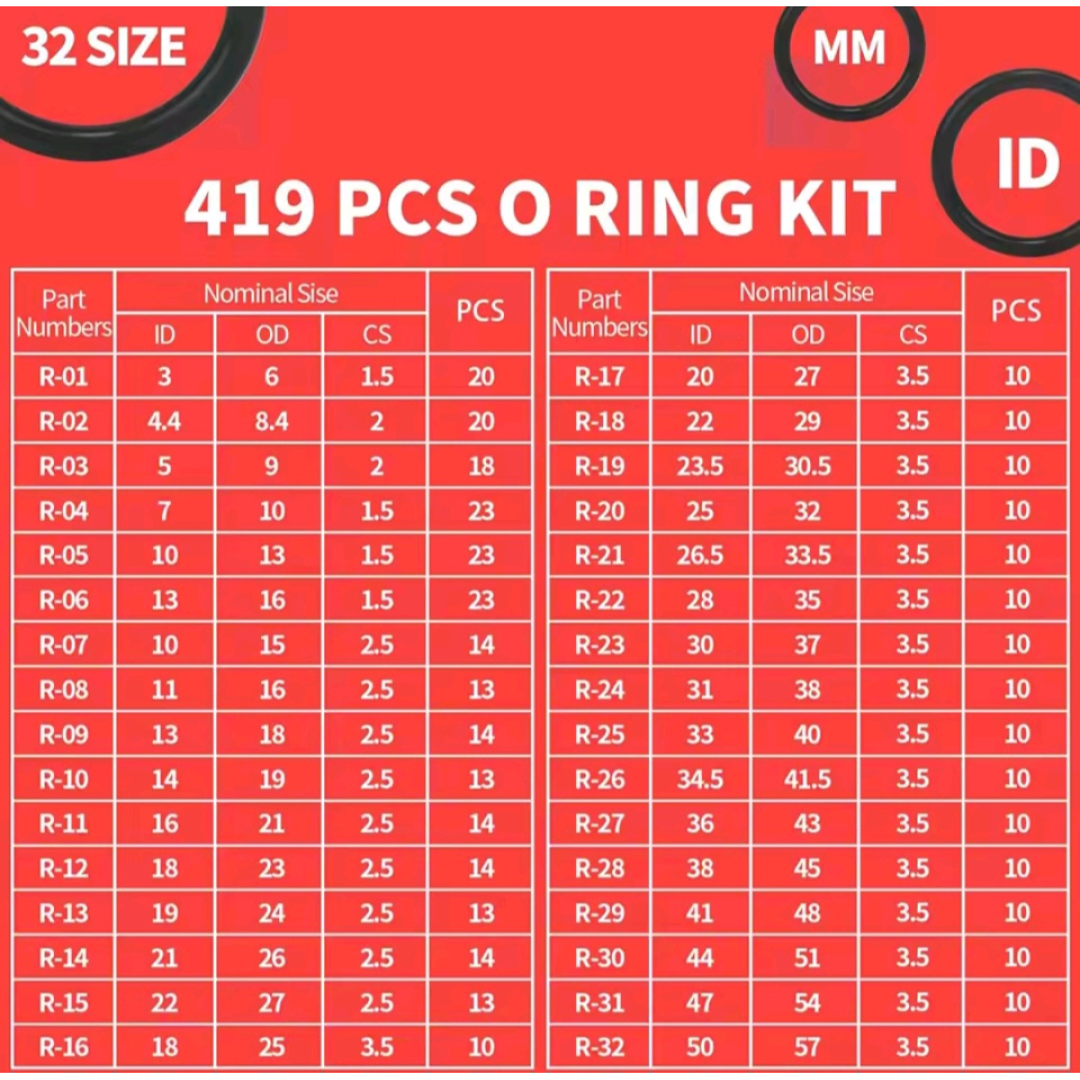 419шт. 32 розміри кільця ущільнюючі